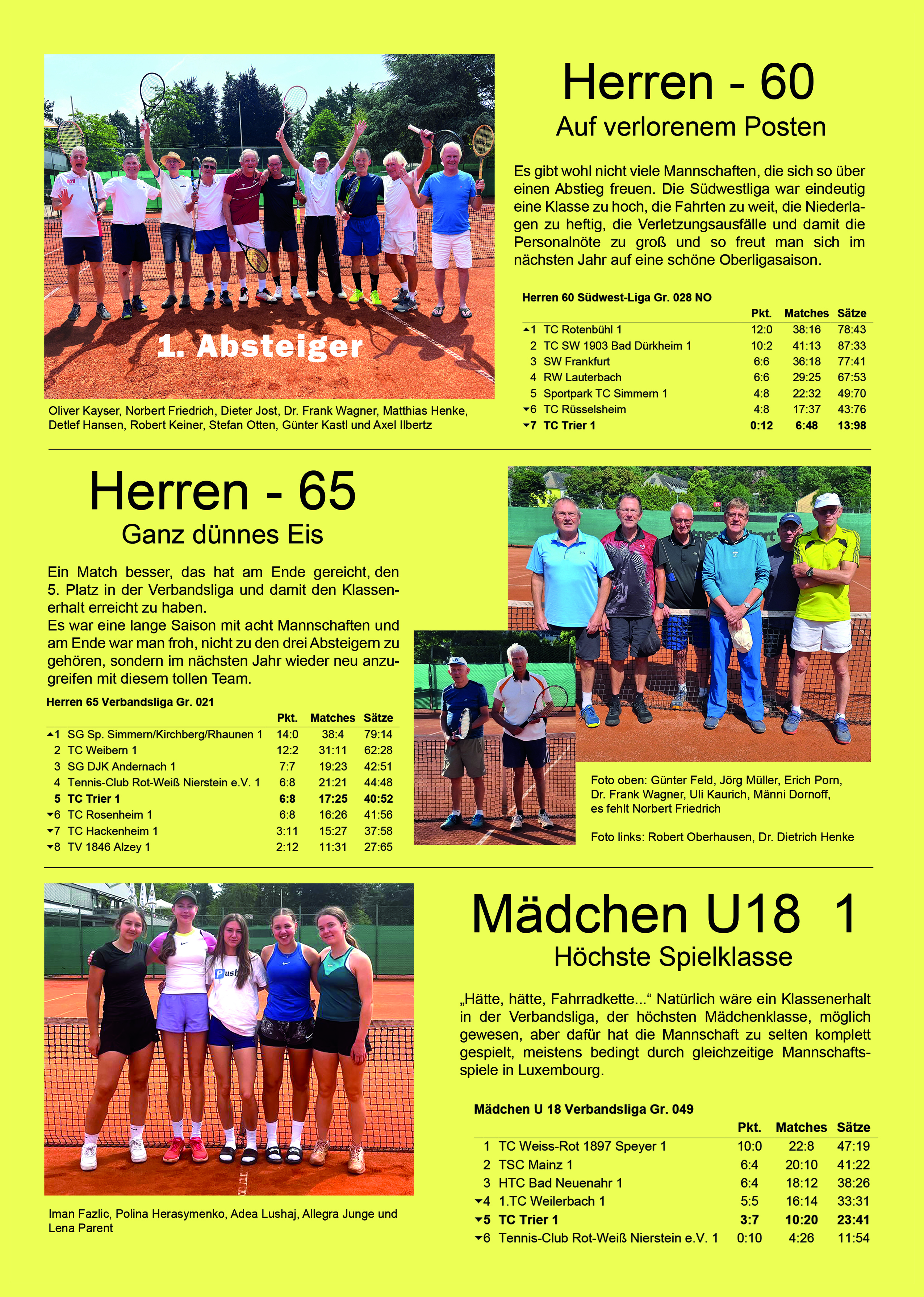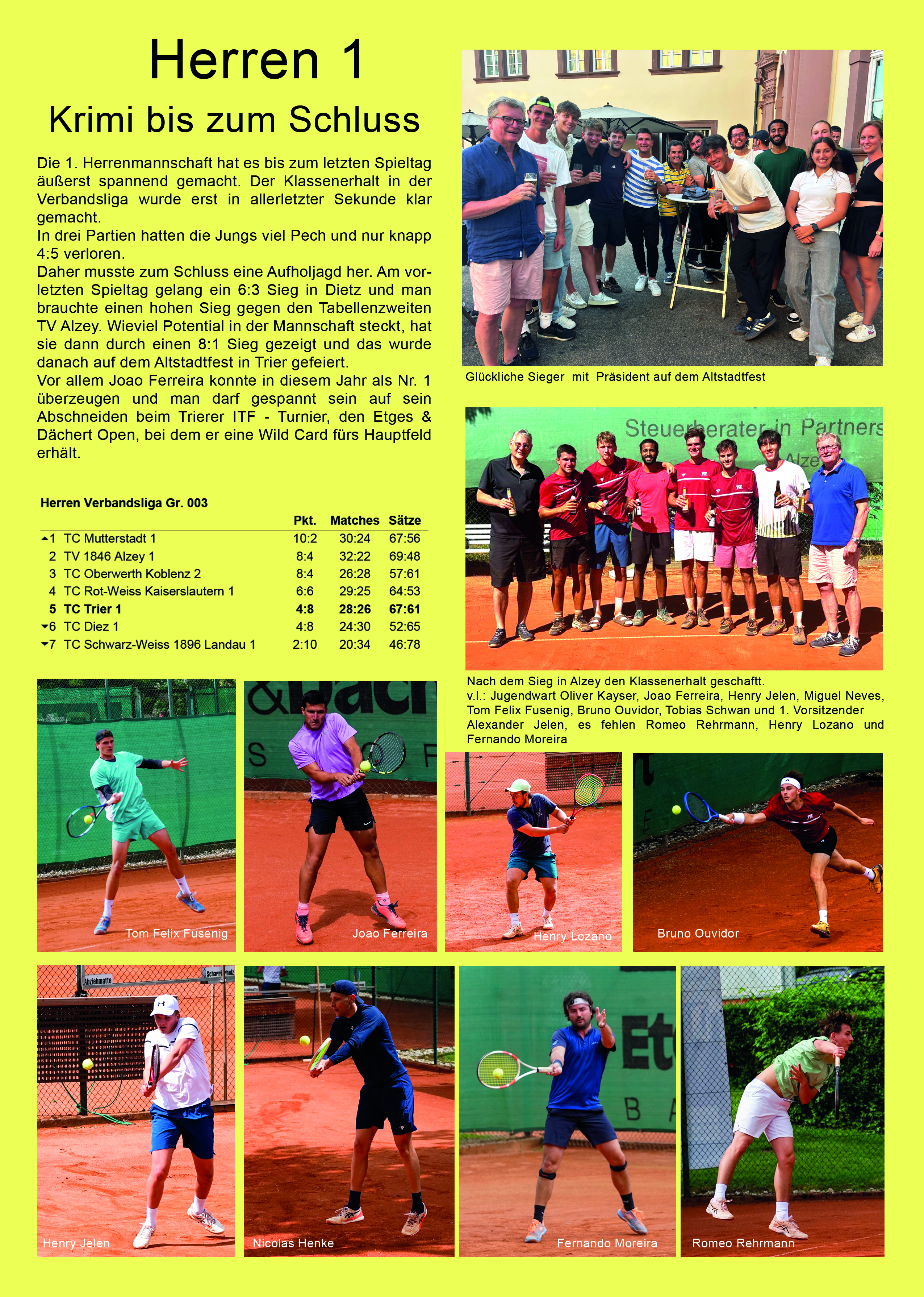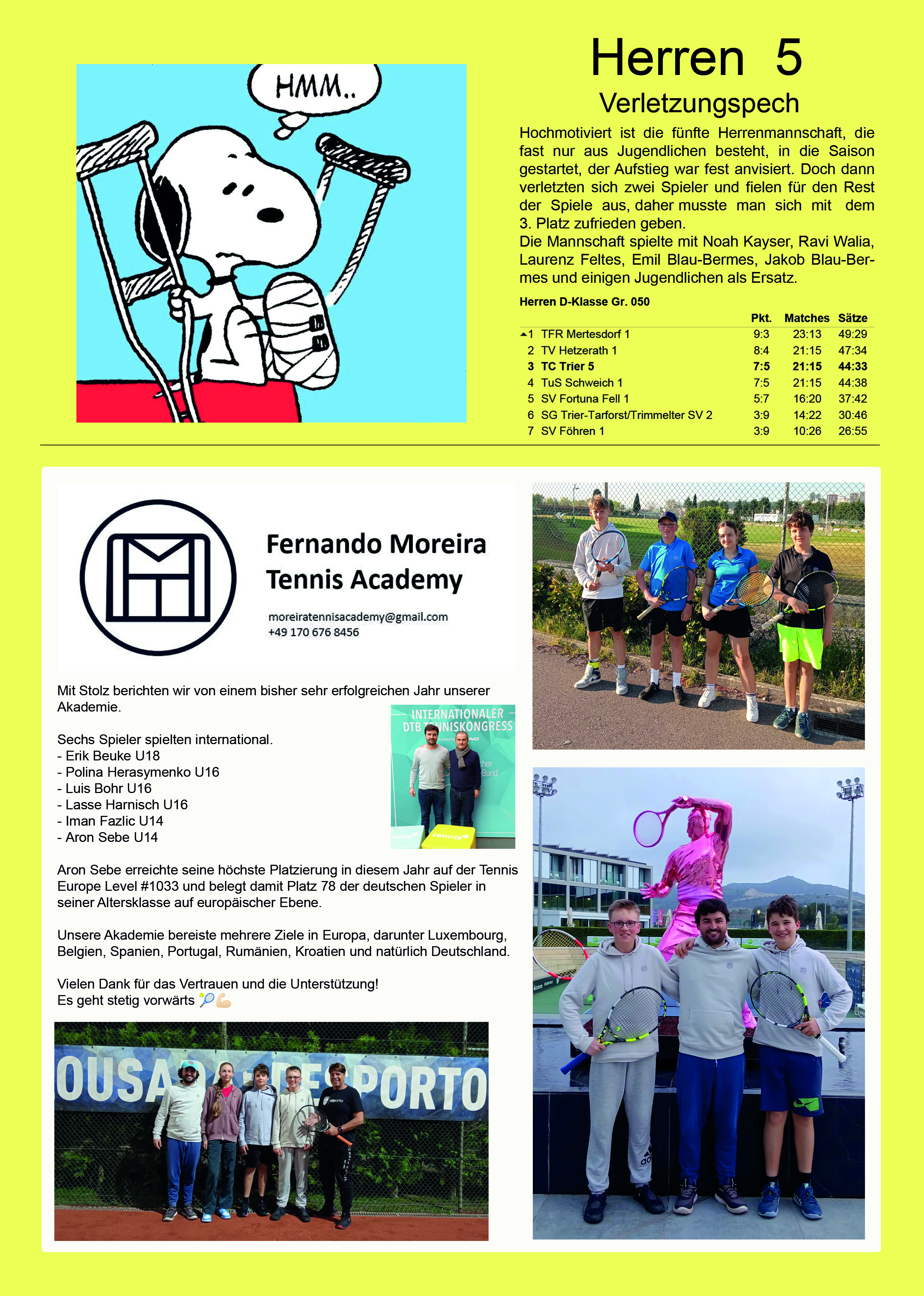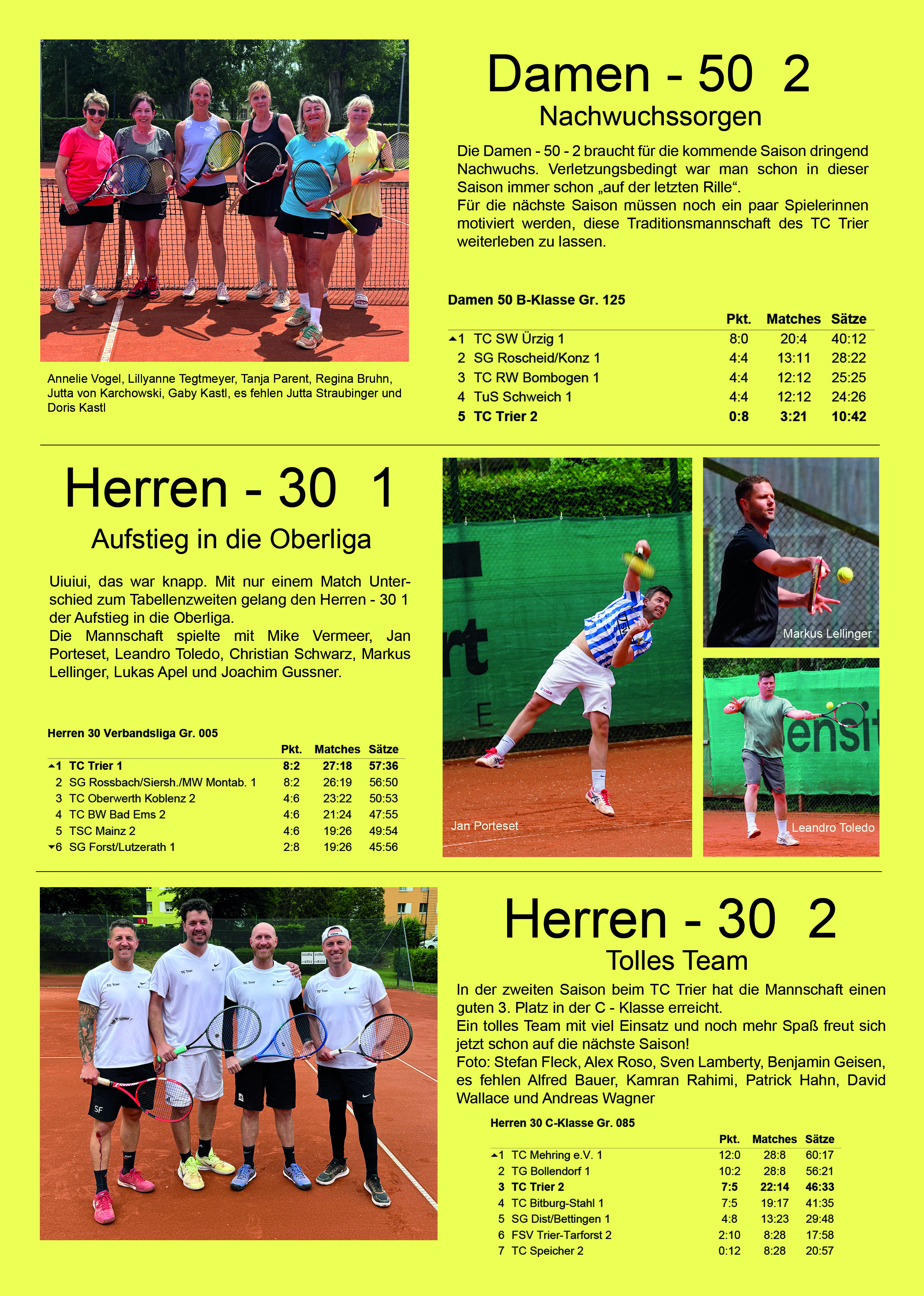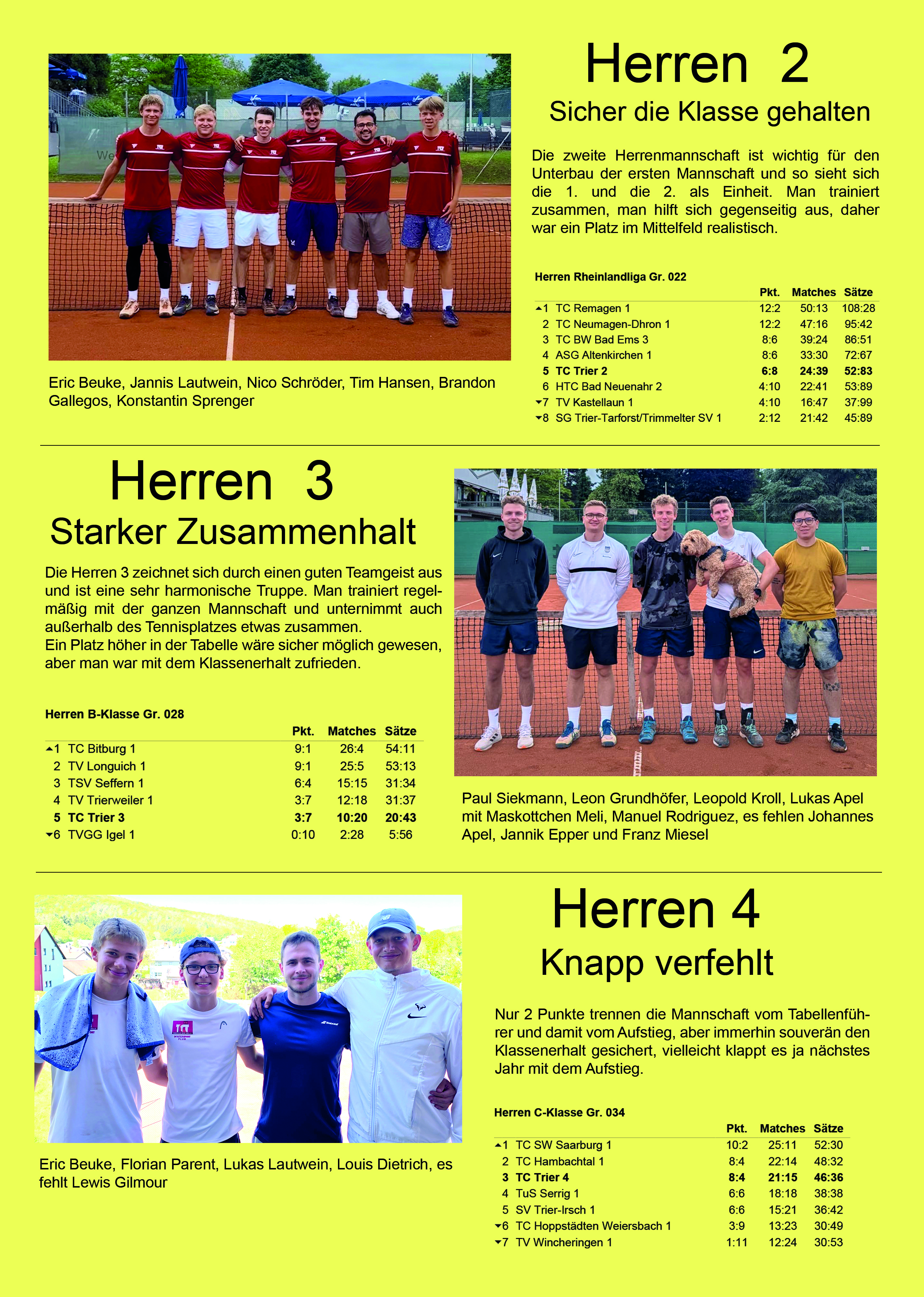 Mit insgesamt 40 Mannschaften repräsentieren unsere Spieler den Tennisclub Trier 1888 e.V. und bringen Ihre Leistung zielorientiert auf den Platz.